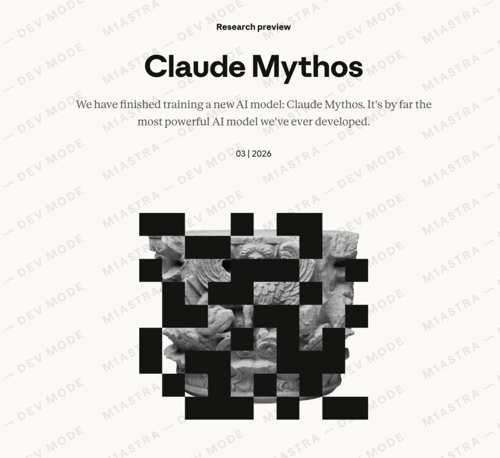 A leaked screenshot from the original Claude Mythos Announcement Blog Post