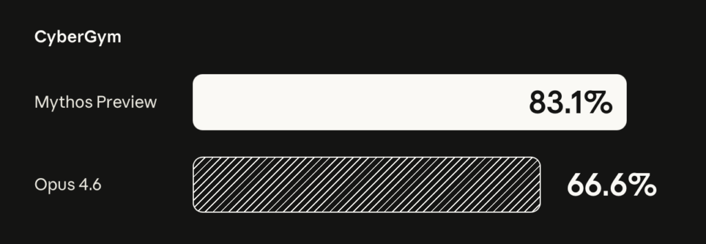 With the official announcement, Anthropic released concrete benchmark numbers that confirm the leaked draft’s claims. Mythos Preview outperforms Claude Opus 4.6 significantly across coding, reasoning, and cybersecurity tasks.