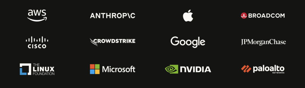 AWS, Apple, Broadcom, Cisco, CrowdStrike, Google, JPMorganChase, Linux Foundation, Microsoft, NVIDIA, Palo Alto Networks, and Anthropic.